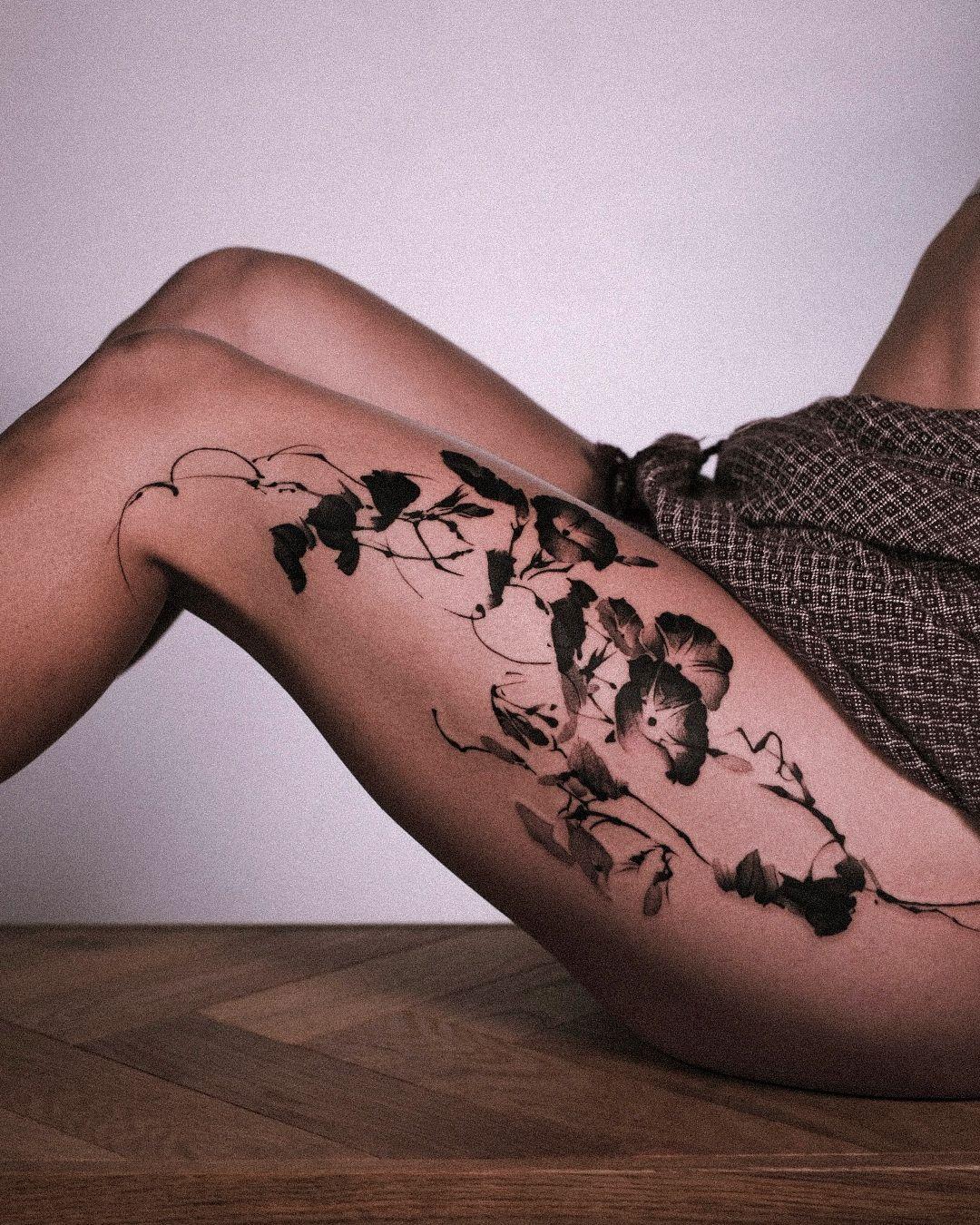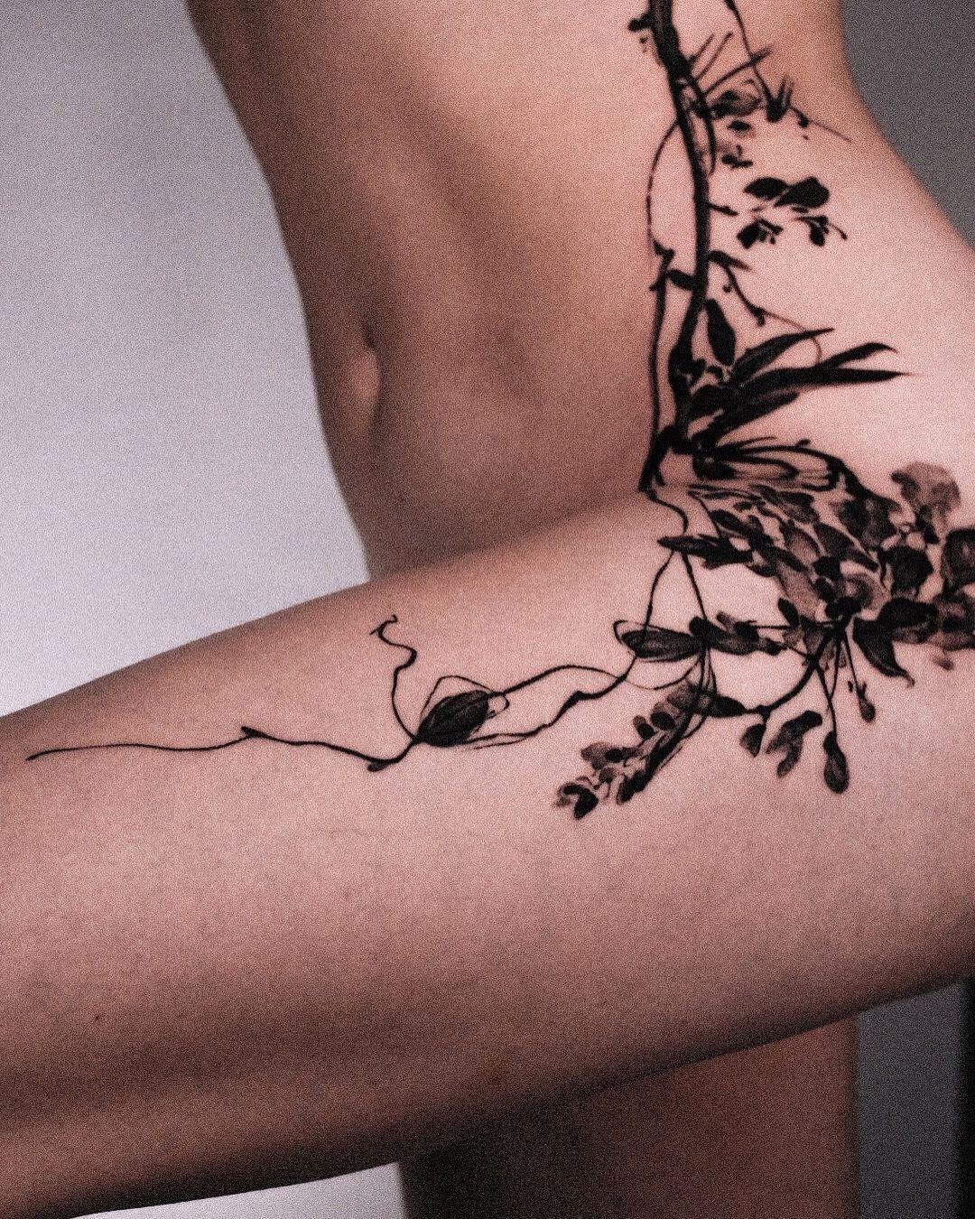 For YingTing Wu, tattooing is all about the return — embracing what grounds her, attuning the meditative cadence of creation. Her early days saw her practising the traditional art of Chinese painting, which she eventually set aside in favor of a master’s in Cognition and Communication and a career in PR and marketing. Yet, the pull to something more tactile and intimate kept echoing. Throwing all caution to the wind, she switched her life around to take an apprenticeship at the famous Dropout tattoo studio in Copenhagen. And the risk paid off. Her technical prowess surfaced real quick. It became clear that this was no new beginning but rather a homecoming — a blossoming of her original language. Soon, she was solidifying her own voice, reining in control and clarity, with a sort of whispering precision. Today, she’s a fully fledged master of her style. One glance at her pieces and you get it: her ink work feels ultra soft and somehow hyper-deliberate. Perhaps, there’s no need to say more than what follows about YingTing’s work: rather than tattooed, her botanical and natural compositions seem cultivated onto skin.