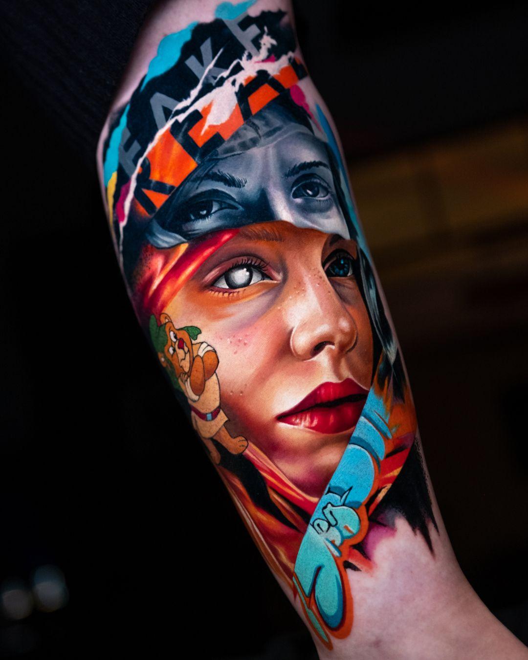 Growing up in Kyiv, Ukraine, Illia Tereshchenko turned walls, sketchbooks and screens into training grounds for the way he tattoos today. A childhood spent drawing and an early love of graffiti led him to art school and digital design, where game development and concept art sharpened his sense of structure, light and motion. For over eleven years he has been blending realism, surrealism and graffiti, creating tattoos that feel like frames pulled from a world in constant movement.